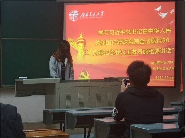 【机械党建】硕士第二党支部组织学习“习近平总书记在中华人民共和国恢复联合国合法席位50周年纪念会议上发表的重要讲话”