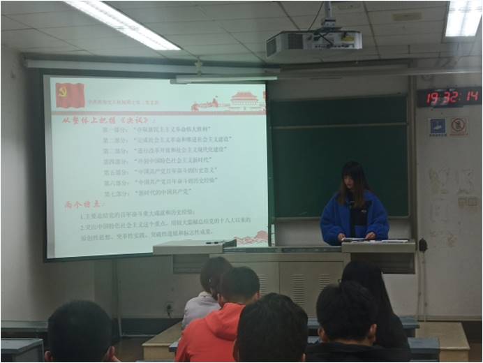 会议的最后,向雨晴同志进行本次会议的总结:《决议》深刻揭示了“过去我们为什么能够成功、未来我们怎样才能继续成功”。希望党员同志们能在会后再次学习《决议》全文,响应党中央号召,勿忘昨天的苦难辉煌,无愧今天的使命担当,不负明天的伟大梦想,能够更加自觉地为实现中华民族伟大复兴的中国梦而努力奋斗。