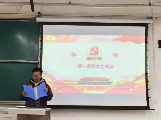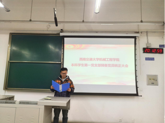 会议开始,主持人介绍大会各项事宜以及大会流程。首先由主持人宣布介绍今天的参会情况、会议流程,接着党支部对张行、余俊、刘谕、何莲、唐超毅转正事宜进行讨论和表决。首先5名预备党员相继宣读转正申请书,汇报自己在预备期的表现、主要优缺点、今后努力方向等情况。