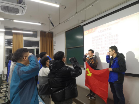 最后,今年11月25日转为预备党员转为预备党员的同志面对党旗,宣读入党誓词。