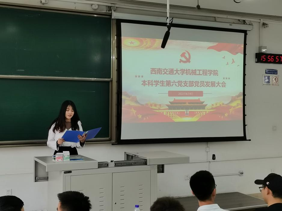 2022年6月9日本科学生第六党支部于X2214召开党员发展大会。大会的主要议题是关于陈菲儿、杜文涛、高佳胜等19名发展对象转为中共预备党员的讨论和表决。会议由邓丹丹同志主持,熊瑜同志、余秋霖同志、郭子涵同志等48位党员同志参与。