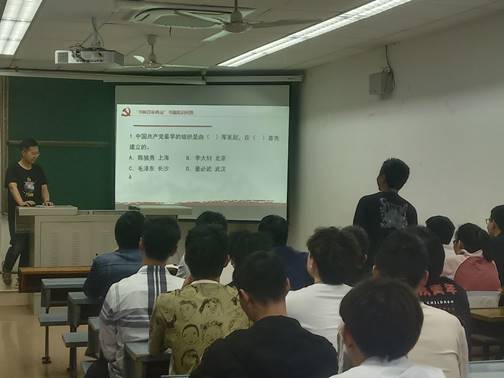 首先,孙舰凯同志介绍了党支部接下来的主题党日活动,动员全体党员同志积极参与到活动中,深化党史主题教育。随后,孙舰凯同志组织开展了“书映百年伟业”知识问答活动,在分组答题环节,全体党员分为三组,以小组形式举手抢答,整个活动过程中,各小组内积极讨论、踊跃抢答。在个人抢答环节,各党员同志积极参与,展现出极大的党史学习热情。