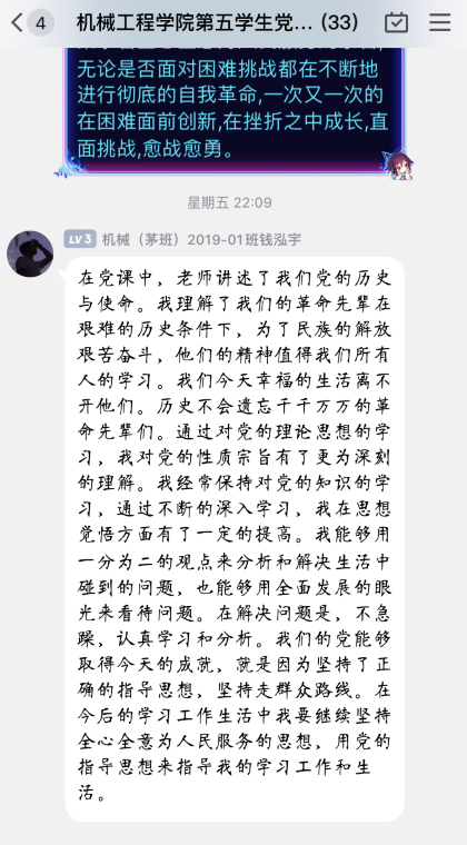 【机械党建】本科学生第五党支部顺利组织“中国共产党的百年历史使命”主题学习会