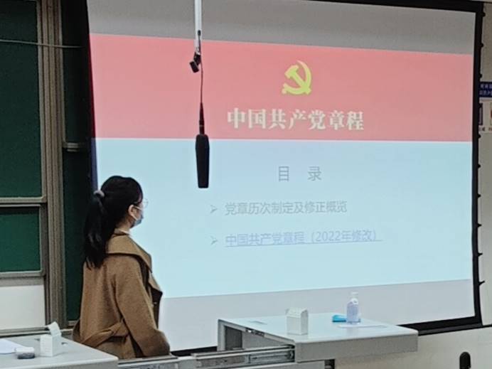 龙秀珍同志强调,党章是每一位中共党员的必修课,学好党章是成为一名合格党员的基本要求。龙秀珍同志详细介绍到,中国共产党章程(2022年新旧对照版)包括总纲和十一个章节的内容;党的二十大通过的党章修正案,共修改50处,其中总纲部分的修改37处,条文部分的修改13处;在总纲部分写入了党的十九大以来习近平新时代中国特色社会主义思想新发展,以及党的初心使命、党的百年奋斗重大成就和历史经验的内容,更好地反映了以习近平同志为核心的党中央推进党的理论创新、实践创新、制度创新成果;在第一章党员必须履行的义务部分,增加了学习党的历史和增强“四个意识”、坚定“四个自信”、做到“两个维护”的内容,体现了新时代新征程对党员同志的新要求。最后,龙秀珍同志提醒大家要积极认真学习党章,深入理解其内涵,并在学习工作生活中遵守和维护党章;认真履行党员义务,努力做合格党员,为科研报国理想不懈奋斗!