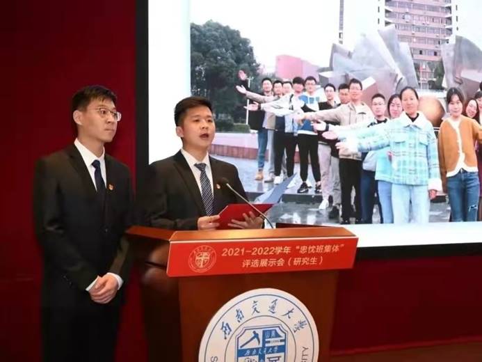 随后,杨露同志为支部同志讲解了学校“忠忱班集体”评选的意义,并表达了党支部始终支持班级参加学校“忠忱班集体”评选工作的决心;带领大家回顾了学校于2022年11月22日在犀浦校区交运楼418会议室举办的“忠忱班集体”评选展示会。(以下为答辩现场图片)