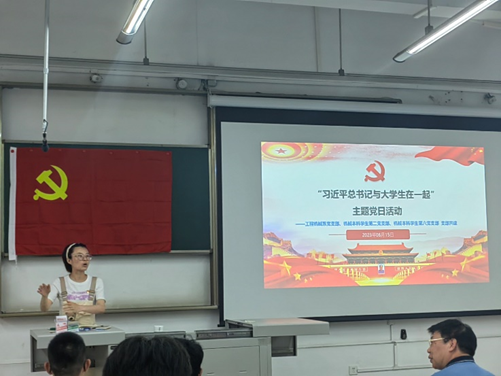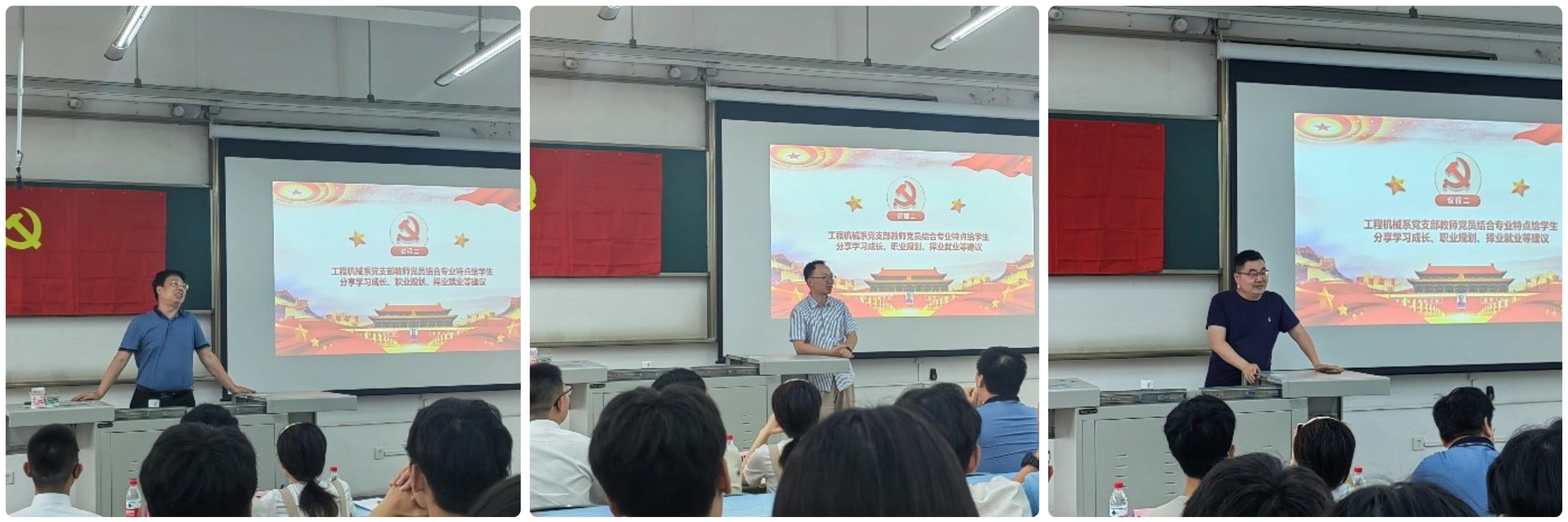 熊瑜同志带领学习了部分习近平总书记到各大学视察时的主要讲话以及部分习近平总书记对大学生的众多回信回复;接着由工程机械系党支部的三位老师结合专业特点给大家分享学习成长、职业规划、择业就业等建议。