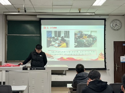 活动伊始,主持人符纯巧同志首先进行了主题为“共建“一带一路”的重要经验与启示”的分享。随后第2-5组的宋文畅、沈天赐、粱巍、林光伟五位同志分别就抗美援朝精神、四川保路运动、中国共产党建党史等方面的党史学习心得进行了分享,同时多位同学也分享了之前参与组织策划党日活动过程的深刻感受。