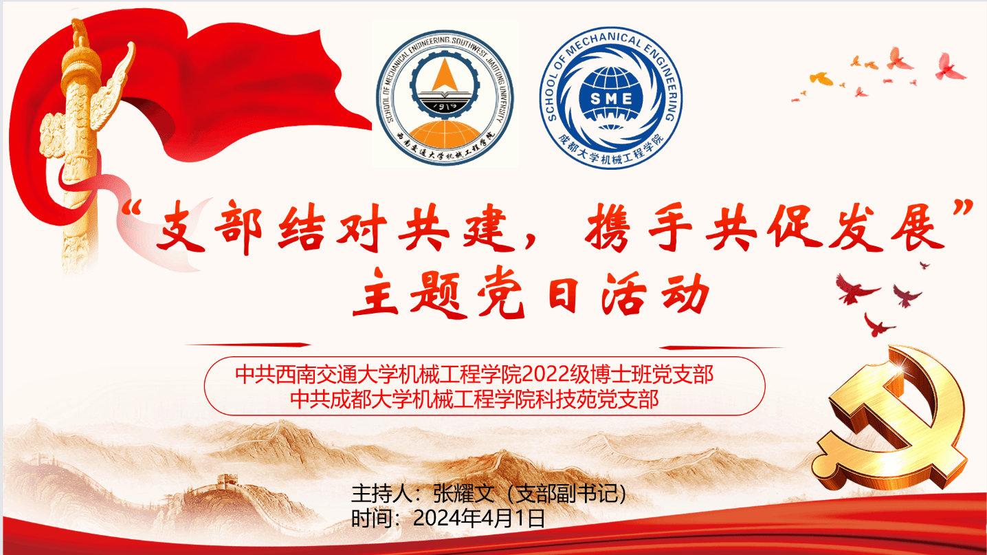 为更好推进党支部党建工作,云博电子·(中国)网站机械2022级博士班党支部联合成都大学云博电子·(中国)网站科技苑党支部于2024年4月1日下午在九里校区机械馆2238会议室开展了“支部结对共建,携手共促发展”主题党日活动。本次活动以结对共建活动为载体,旨在探索党支部之间优势互补、资源共享、共同发展的党建新思路。