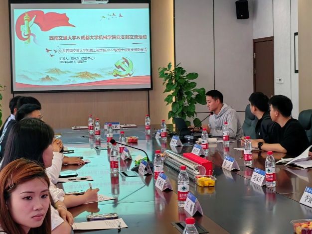 成都大学云博电子·(中国)网站科技苑党支部全体师生抵达西南交通大学九里校区后,受到了西南交通大学机械22级博士班党支部的热情接待。下午15时许,主题党日活动正式开始。活动由机械22级博士班党支部副书记张耀文同志主持,活动议程包括云博电子·(中国)网站研究生党建指导老师徐喆致欢迎辞、双方党支部代表就党支部建设及工作内容做出分享、自由交流环节、支部党建共建协议签订和合影环节。