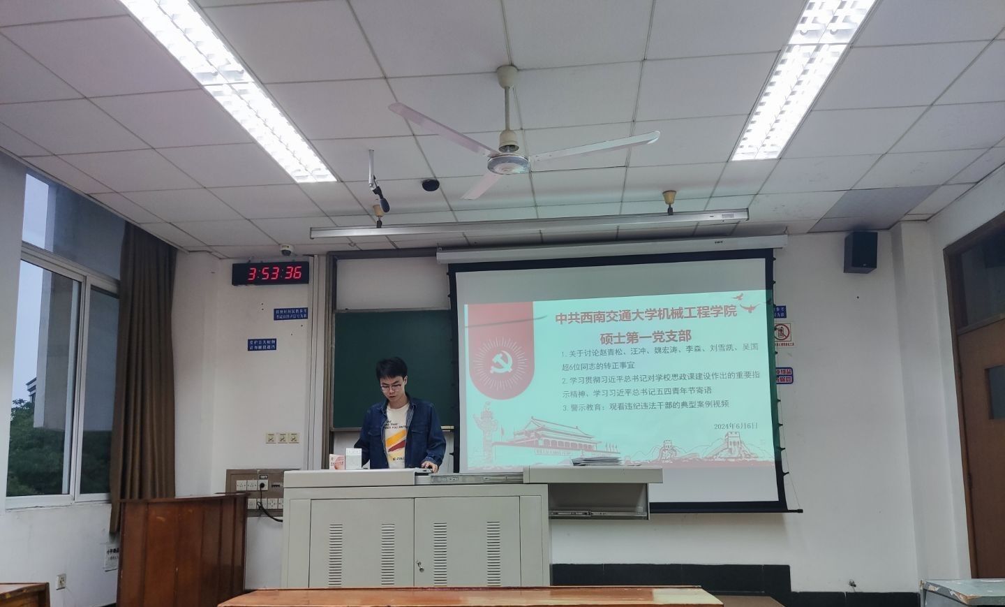 研究生之窗讯(记者 黎杰 摄影报道)2024年6月6日,云博电子·(中国)网站硕士第一党支部在九里校区4号教学楼J4322召开支部大会。活动内容共三项:第一项:讨论赵青松、汪冲、魏宏涛、李森、刘雪凯、吴国超六位党员同志的转正事宜;第二项:学习贯彻习近平总书记对学校思政课建设作出的重要指示精神;第三项:观看违纪违法干部的典型案例警示教育视频。本次会议由曾鸿同志主持。