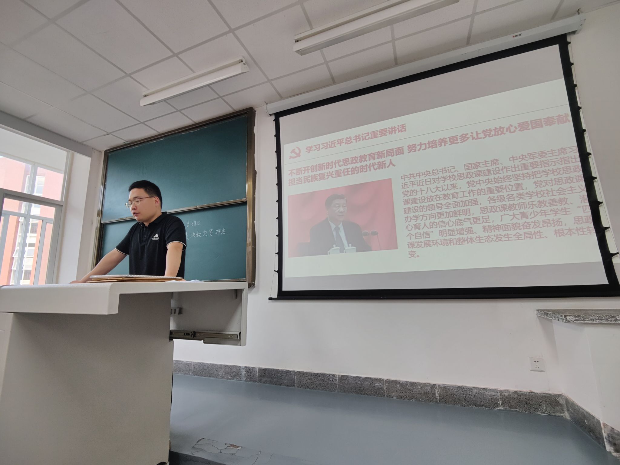 孟凡善同志首先带领大家进行了“学习贯彻习近平总书记对学校思政课建设作出的重要指示精神”的深入学习,学习党的创新理论是指引我们前进的灯塔,是我们战胜一切艰难险阻的锐利武器。通过思政课的方式,可深刻理解这一思想的科学内涵、精神实质和实践要求,不断提高自己的政治觉悟和理论素养。学习贯彻习近平总书记对学校思政课建设作出的重要指示精神,是我们每一位青年学生的责任和义务。我们要以更加饱满的热情和更加坚定的信念,投身到思想政治学习中去,为实现中华民族伟大复兴的中国梦贡献青春力量。