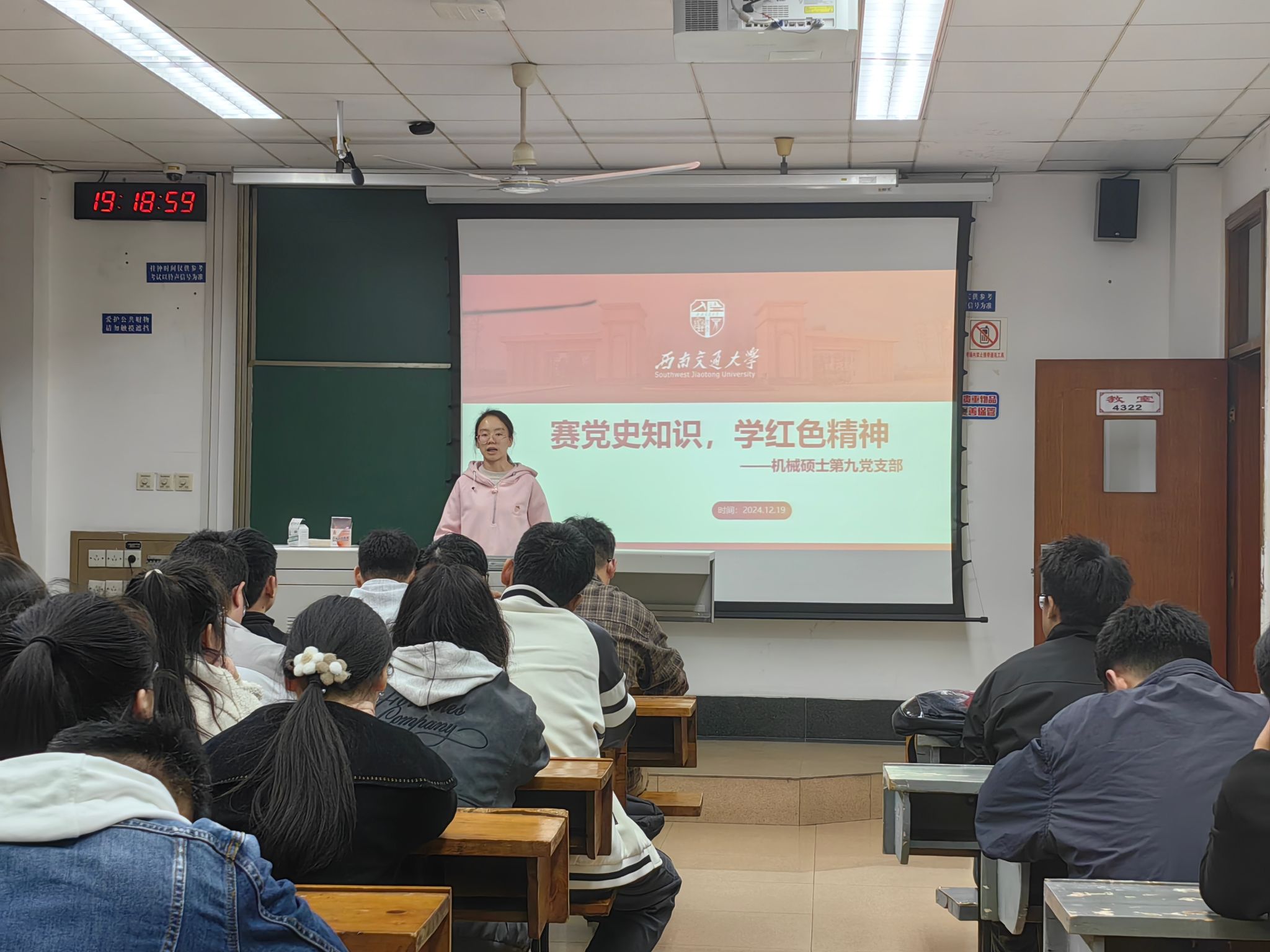 为深入学习党史、弘扬红色精神,进一步增强党员的历史责任感和使命感,党支部于2024年12月9日晚19:00在J4322教室开展了系列党史特色活动的第五个主题党日活动——“赛党史知识,学红色精神”。活动参与人员为党支部全体党员以及入党积极分子。