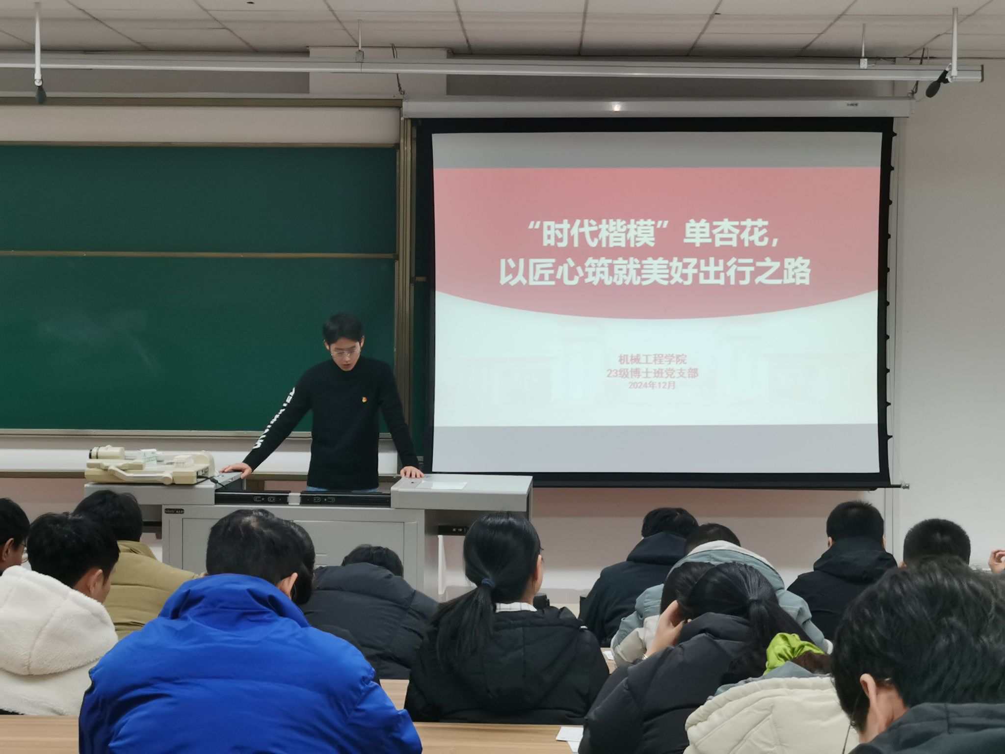 研究生之窗讯(记者 计丹 李笑晗 摄影报道)中央宣传部日前向全社会宣传发布单杏花同志的先进事迹,对她在科技创新赋能交通强国建设方面的卓越贡献给予了高度肯定,授予她“时代楷模”称号,号召全社会向她学习。云博电子·(中国)网站23级博士班党支部积极响应号召,于12月12日开展学习“时代楷模”主题党日活动。