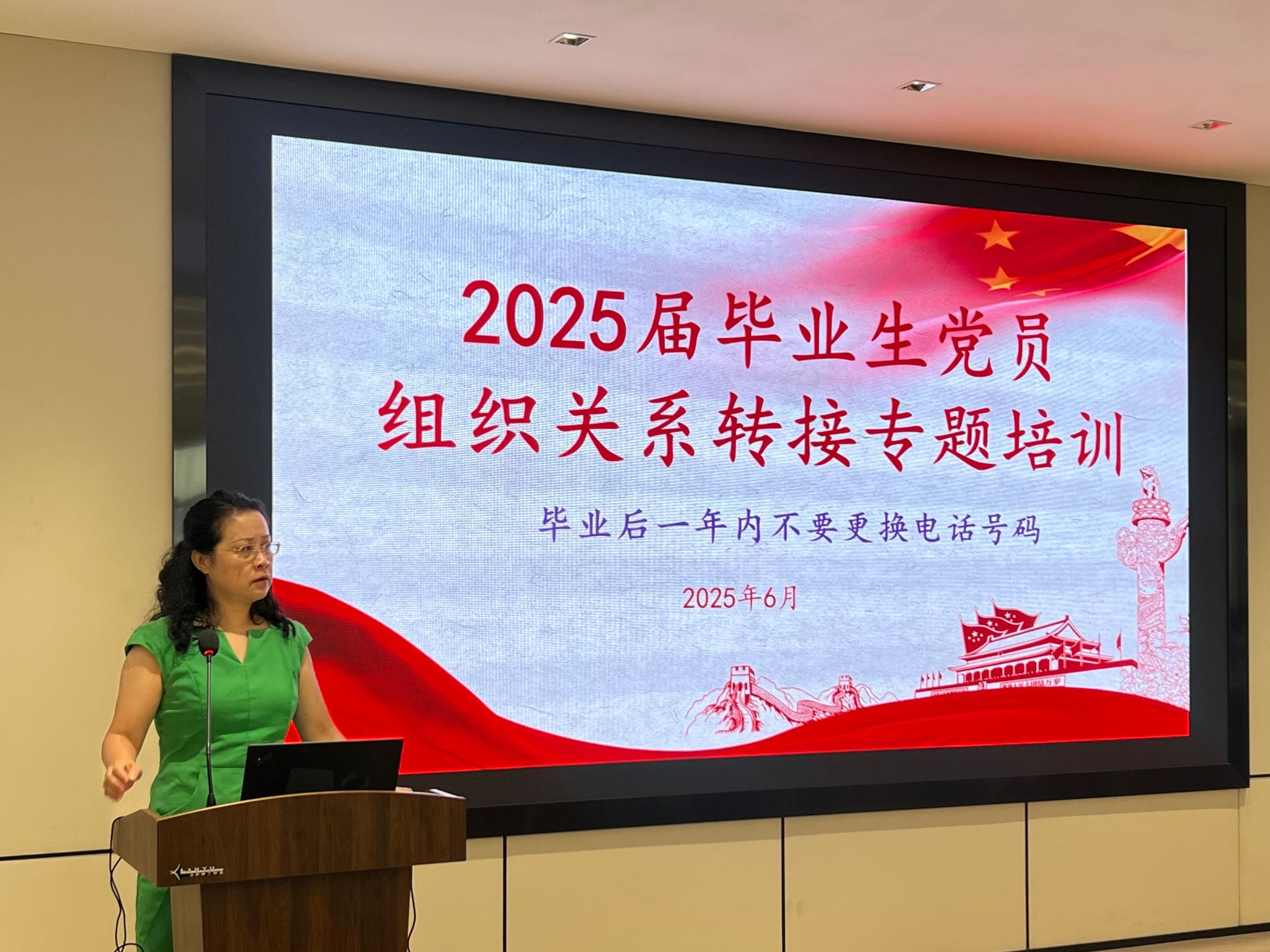 在组织关系转接专题辅导中,梁艳老师以"规范转接强党性,接续奋斗显担当"为主题作系统讲解。重点部署三项核心要求:一是深刻把握组织关系转接的政治属性,将其作为检验党员组织观念和规矩意识的"试金石";二是构建"政策宣讲-档案核验-去向登记-跟踪督导"全流程服务体系,依托智慧党建平台实现"指尖转接"零跑动;三是强化转接工作的教育功能,引导毕业生党员在职业发展与社会服务中践行双重使命。梁老师特别强调"三个不断"原则:转接期间组织联系不断链,岗位变动中党性锤炼不断档,身份转换后先锋作用不断线,要求全体党员以"归零再出发"的姿态,在新征程上永葆政治本色、续写奋斗华章。