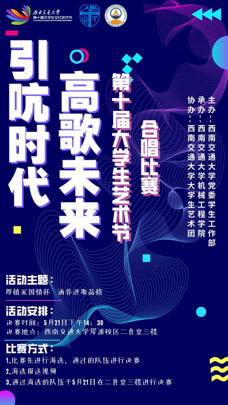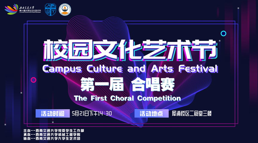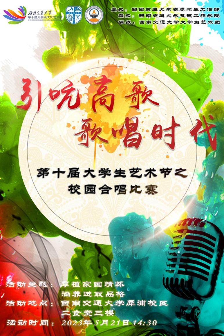 喉中日月,口中乾坤。西南交通大学第十届大学生文化艺术节之第一届“引吭时代,高歌未来”校园合唱比赛即将在2023年5月21日下午14:30于西南交大犀浦校区二食堂三楼拉开帷幕。