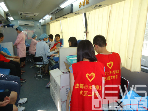 5月29日,由成都市血液中心主办,西南交通大学献血宣传服务队承办的“血车进校园”献血活动在各个食堂门口开展。献血活动受到了许多热心同学的支持,他们无偿捐献出自己的血液,奉献了一份份爱心。