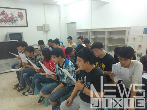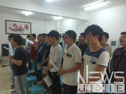 跟随班长的步伐,记者走进练习的教室,一串流利动人的钢琴声不绝于耳,弹奏者便是机械3班的指导老师,同学都亲切地叫他“老邓”。据同学们说,他总是不厌其烦的指导练歌,很细心的告诉大家每个部分的技巧。站在老邓面前的,便是机械3班全体同学了,大家都在附和着音乐认真歌唱着,集体的声音汇聚成美丽的歌曲,令专业的音乐指导老师都赞不绝口,细心的记者发现,整齐的队列中只有一个女生,官班长对此解释说:“也许大部分人会认为这是一个很大的劣势,但我们却认为这是一个优势,并且会在决赛中将这个优势发挥出来。”他们会用怎样的方式发挥出这个特殊的优势,班长也没有向记者具体透露,那么,就让我们拭目以待吧。