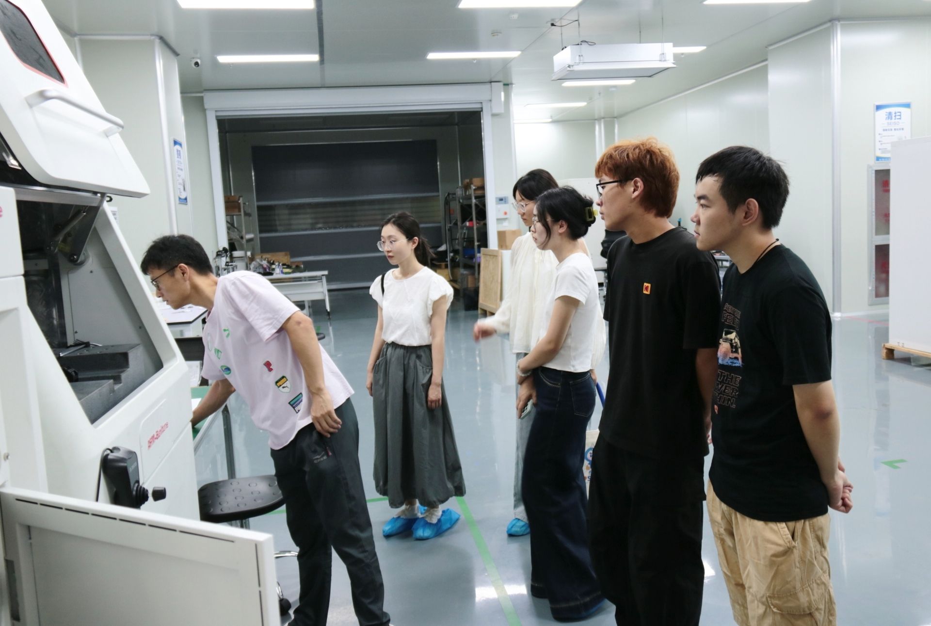 8月27日上午,实践队前往江苏省苏州市苏州知睿精工科技有限公司。公司负责人张锐博士带领实践队走进企业研发基地,通过动态演示与现场讲解,详细介绍了原子力显微镜在材料表面形貌观测等领域的核心作用,从探针设计、扫描模式到数据处理的全流程进行了细致拆解。此次实践让队员们跳出课本,沉浸式接触微观检测领域的前沿技术,不仅系统掌握了原子力显微镜的核心技术原理与行业应用价值,更深刻领悟到 “精准求真、严谨钻研、创新突破” 的科研精神。队员们表示,将以此次实践为契机,把微观检测技术知识与专业学习紧密结合,进一步提升自身的技术认知与创新思维。