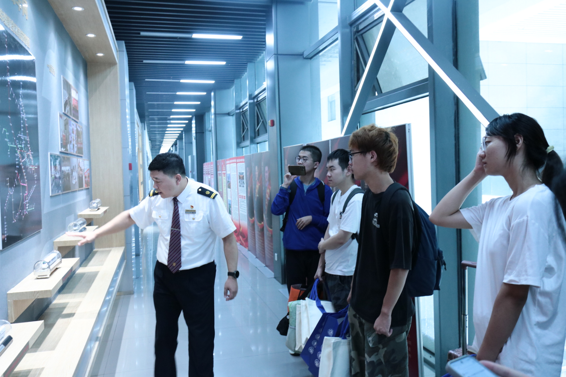 8月28日下午,实践队前往中国铁路上海集团有限公司南京动车段,重点参观了动车检修库、消防安全管控中心、教育培训中心等核心区域。在动车检修库内,专家讲解了动车检修的安全事项和工作流程,演示了智能诊断系统如何通过传感器数据实时监测车辆运行状态;在消防安全管控中心,专家介绍了全面的安全防护措施和突发事件处理方案,演示了当突发事件发生时系统如何监视、确认、处理和反馈;在教育培训中心,专家介绍了实习生的培训流程,带领师生参观了不同职业员工的不同培训操作室。同学们在交流中明晰职业方向,对铁路行业有了更加清晰的认知。