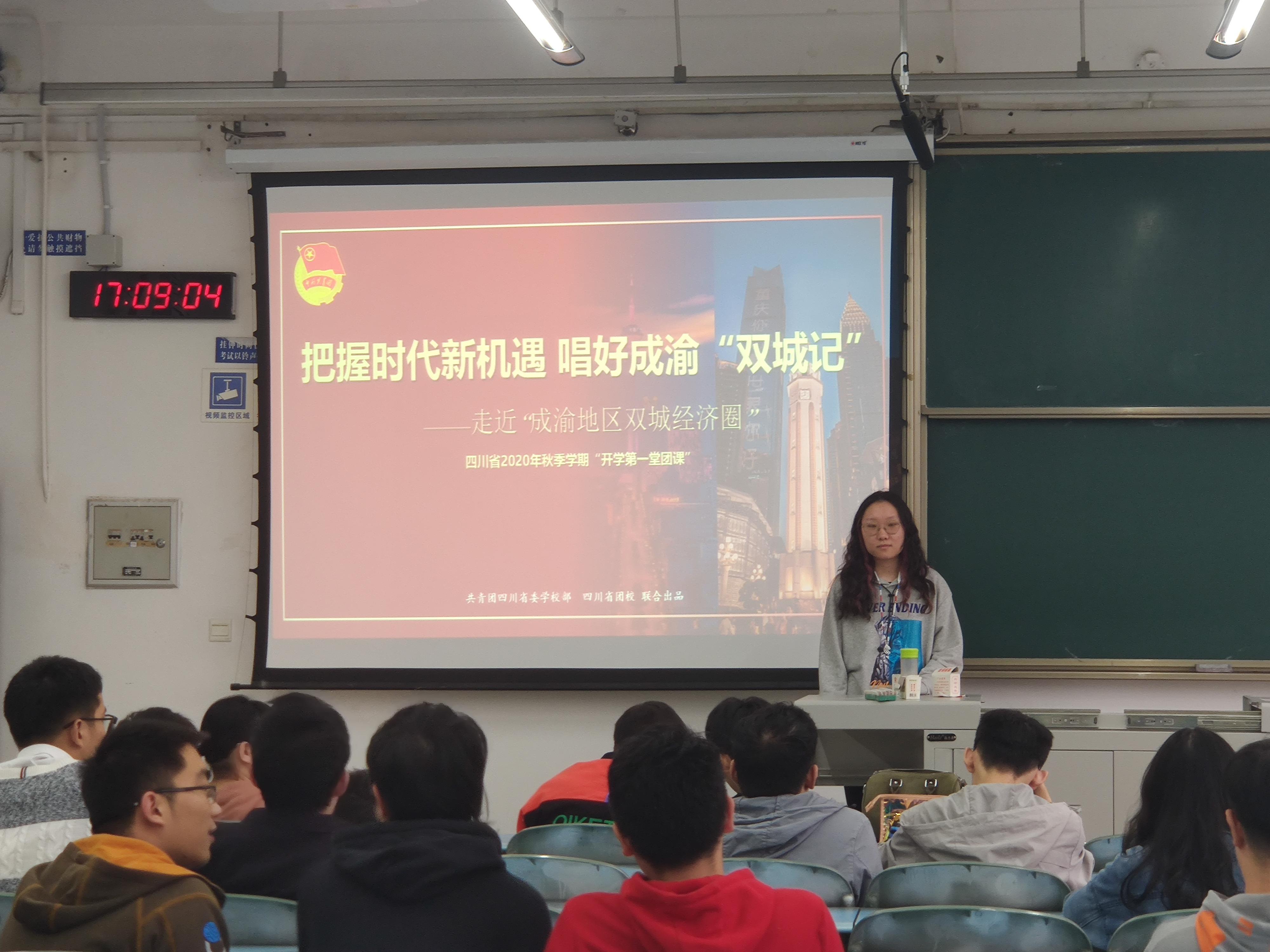 2020年10月12日,云博电子·(中国)网站机械2017级1班和机械2017级2班在X2335联合开展了开学第一堂团课“带你走进成渝地区双城经济圈”主题团课。