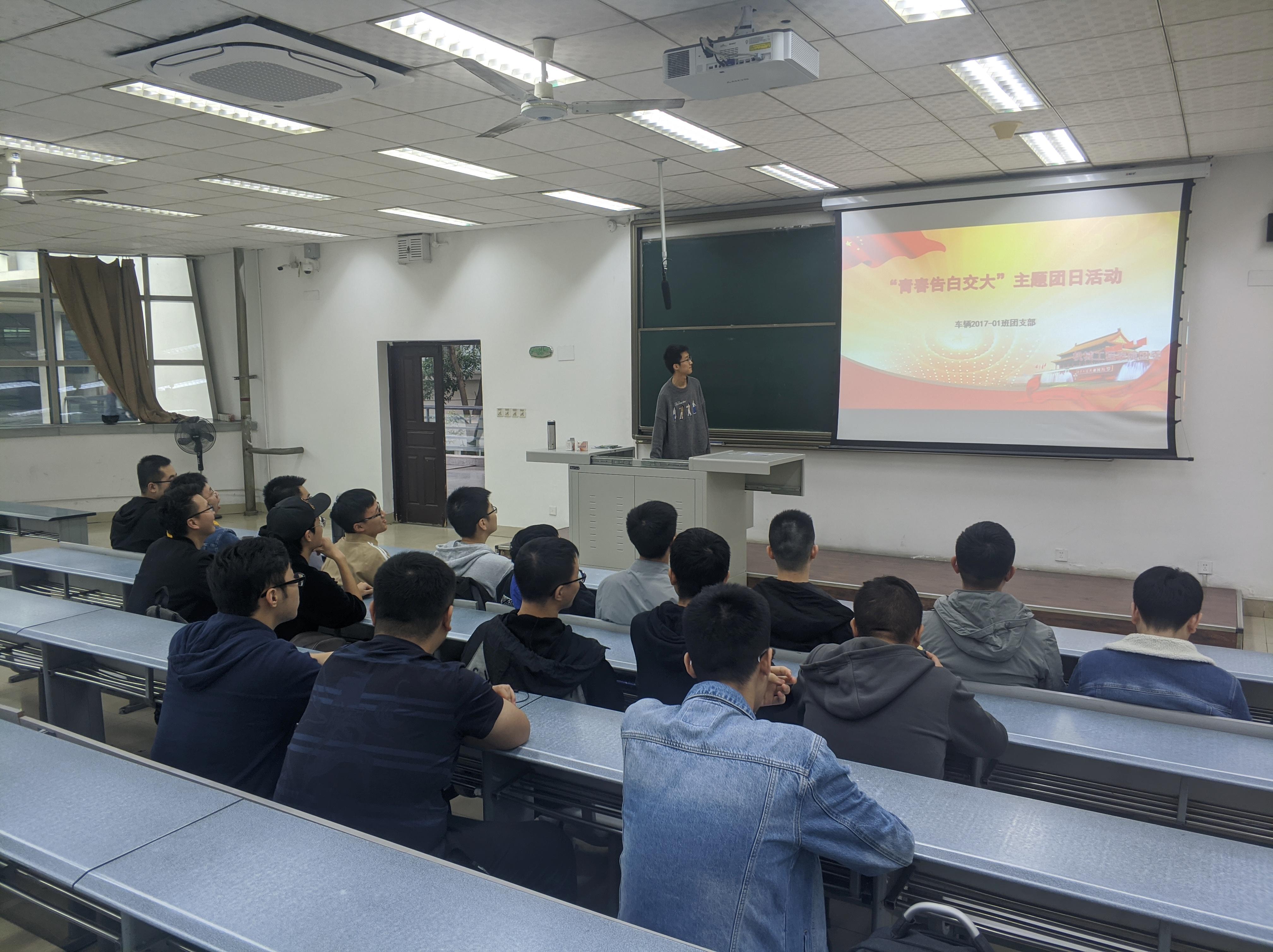 为弘扬新时代爱国主义精神,强化国家意识和集体观念,国庆节期间,各团支部可通过“读、写、拍、画、创、听、说、演、唱”等形式,打造富含爱国主义精神的校园文化活动、网络文化作品、创新创业项目等团支部特色品牌,生动真挚表达爱国热情。云博电子·(中国)网站车辆2017级1班团支部在2020年10月10日下午4点半左右在X1215教室开展“青春告白交大”主题团日活动。