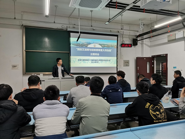 袁欣老师和机械2017-02班班长张鑫宇同学就“预防艾滋与结核病”主题向各位机械设计制造及其自动化的同学进行了知识讲解,帮助与会同学了解了艾滋病和结核病的由来、传播途径及危害,推动各位同学通过良好的行为规范远离艾滋病,呼吁社会宣传与关爱,促进学生健康发展。同学们认真聆听讲解,积极参与交流,相关知识、思想得到有效普及,会议圆满结束并取得预期成果。