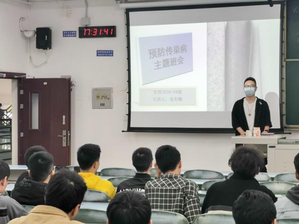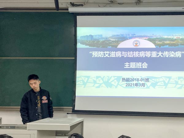 热能2018-01班同学们一起观看了关于艾滋病与结核病的相关知识的教育视频,通过视频学习的方式让大家了解了艾滋病与结核病的相关知识。之后班长罗江函主持班会,通过PPT的方式让大家进一步了解到结核病和艾滋病的防治知识、传播途径和预防措施,再一次强调了传染病防控的重要性。