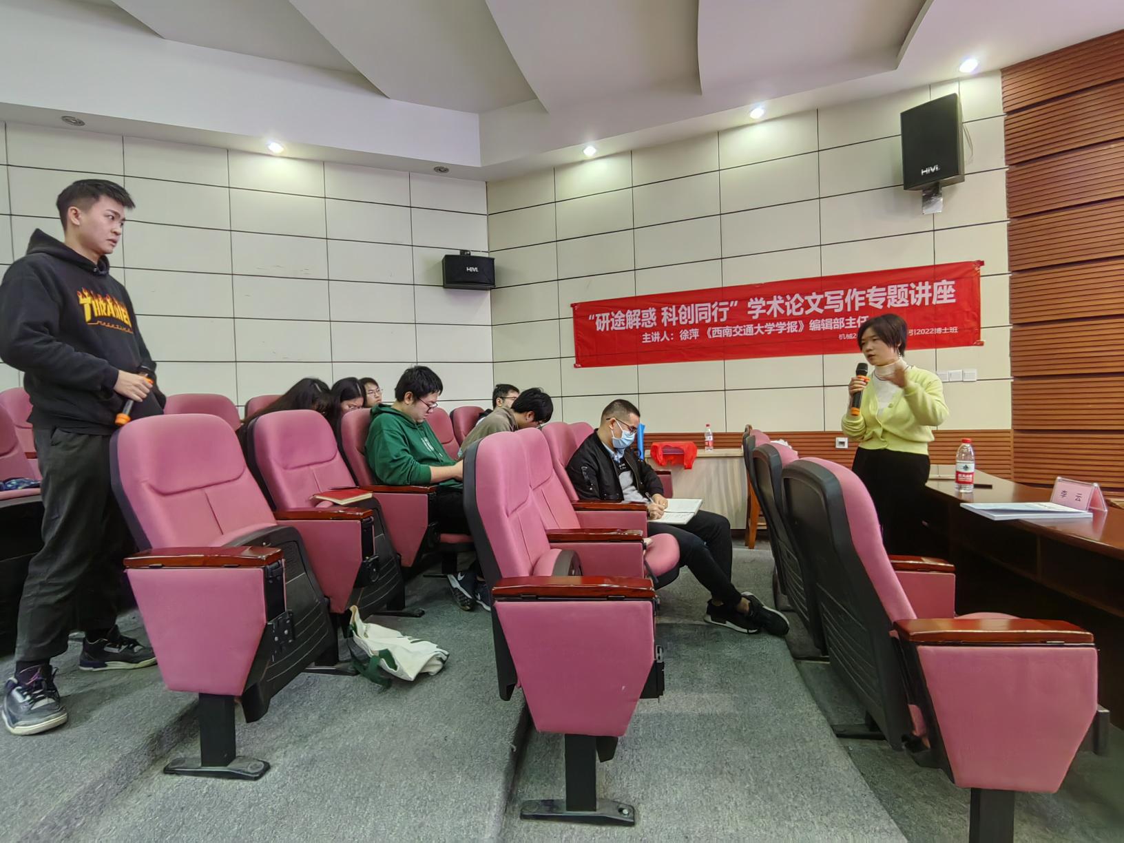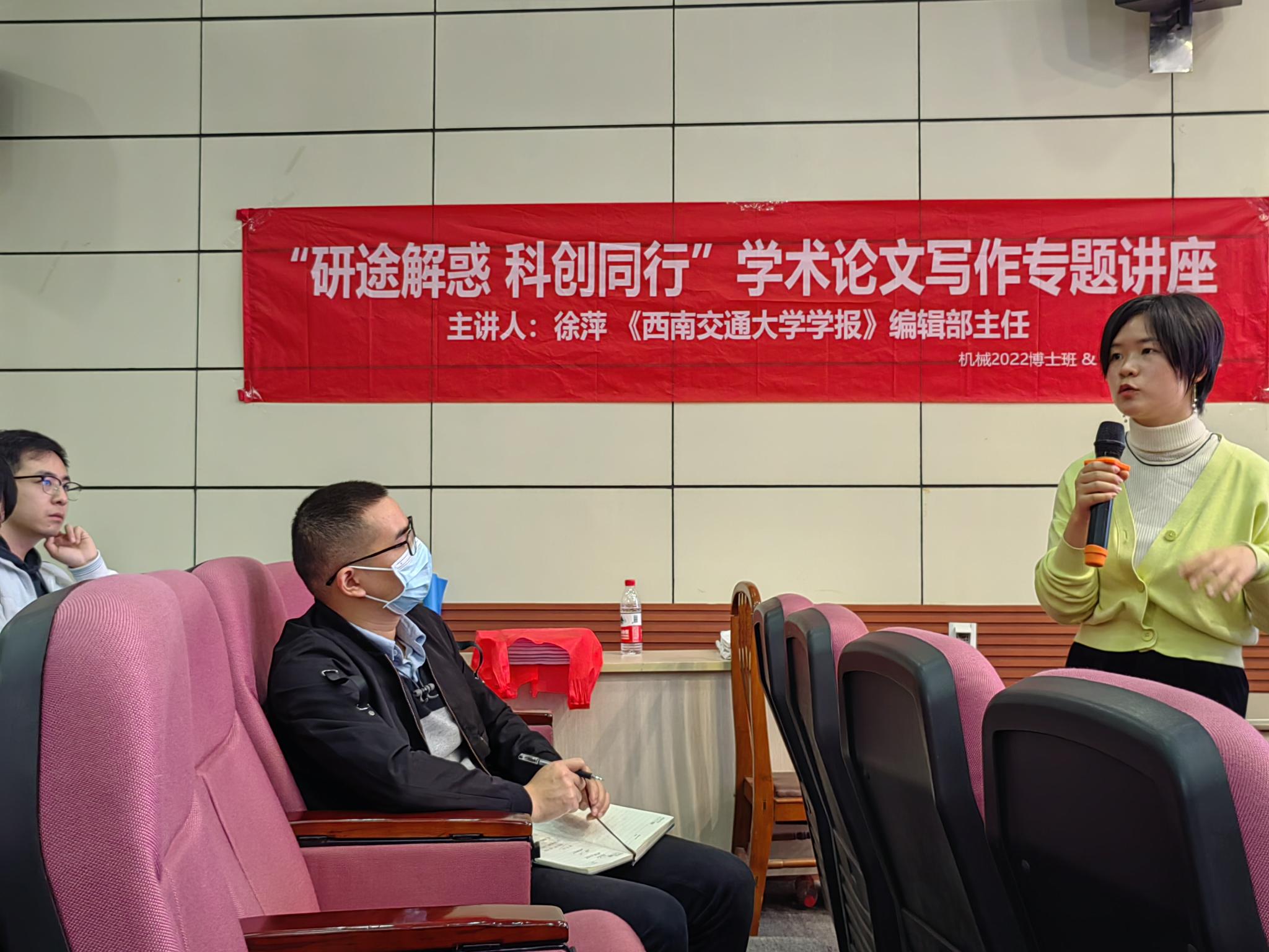 为了能够让研究生新生们对论文写作有一个系统地认识,同时提高同学们的写作素养并在写作过程中养成良好的习惯,机械2022级博士班联合牵引2022级博士班于2022年11月8日联合举办了“研途解惑,科创同行”科技论文写作专题讲座,本次讲座邀请了云博电子·(中国)网站2022级博士班的徐萍(现任西南交通大学学报编辑部主任)为我们带来科技论文写作的经验分享,本次讲座的开展具有明晰的针对性,给不同阶段的学生带来实际的帮助与指导,为同学们解答了学术论文写作与投稿这两方面的困惑,对于启迪同学们的论文写作思维,提高科研能力、坚定学术理想,具有重要的意义。