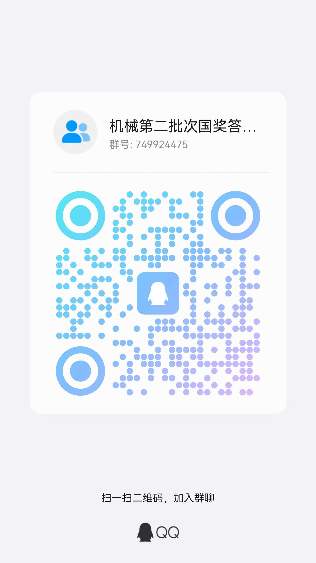 (四)答辩同学需于11月3日中午12:00前加入QQ群“机械第二批次国奖答辩通知群(群号:749924475)”(如下图所示)。