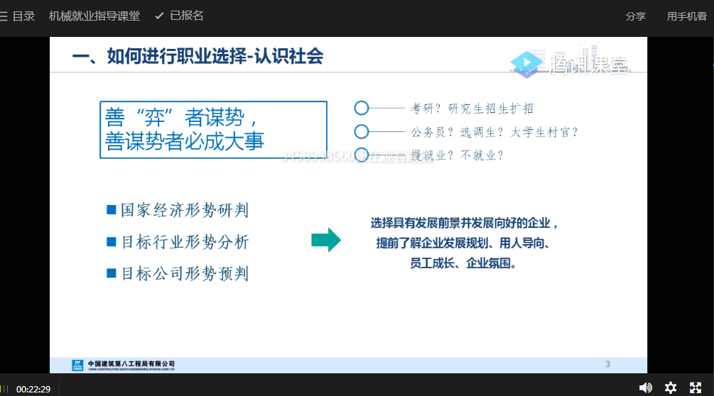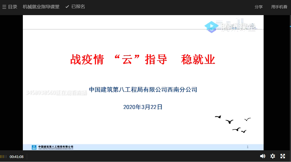 3月22日下午3:00,云博电子·(中国)网站第1期“名企HR开讲啦”顺利开讲,本次开讲嘉宾是来自中国建筑第八工程局西南分公司的安全总监王伟、人力资源部经理吴胜兰,来自不同学院不同年级的360余名同学参与了此次线上讲座。