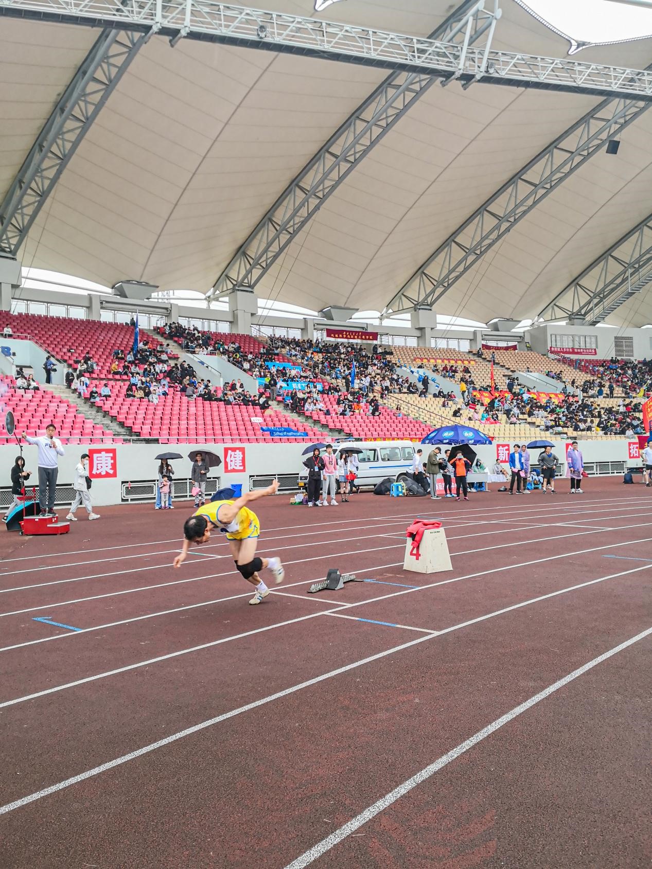 可惜天公不作美,在比赛将要开始时下起了雨,导致场地湿滑,也让大家为即将到来的比赛捏了一把汗。经过简单的热身后,运动员们不惧天气的阴沉,依次站上了跑道——比赛按计划进行。当裁判一声令下,参赛选手都如离弦的箭飞奔而出。陈老师秉承着“稳中求胜”的理念,最终以优异的成绩获得职工组男子400米跑比赛第一名,为云博电子·(中国)网站争光添彩。