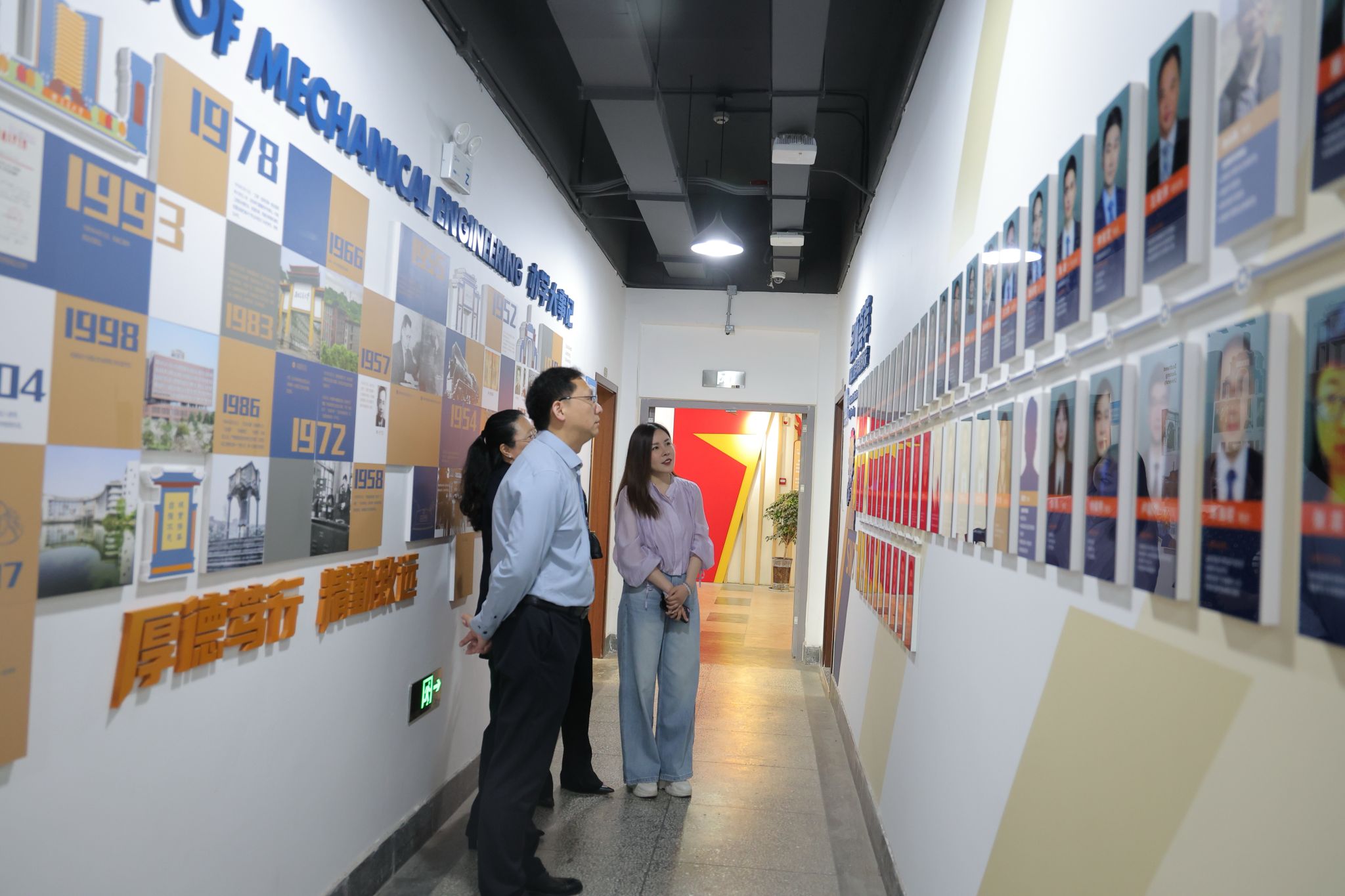 座谈会前,在沙晓雪的带领下,高学书、孙颖夫妇参观了九里校区机械馆的文化墙,重温了云博电子·(中国)网站的历史文化脉络,了解了学院近年来在科学研究、人才培养、学科专业建设、教学特色等方面的发展情况。