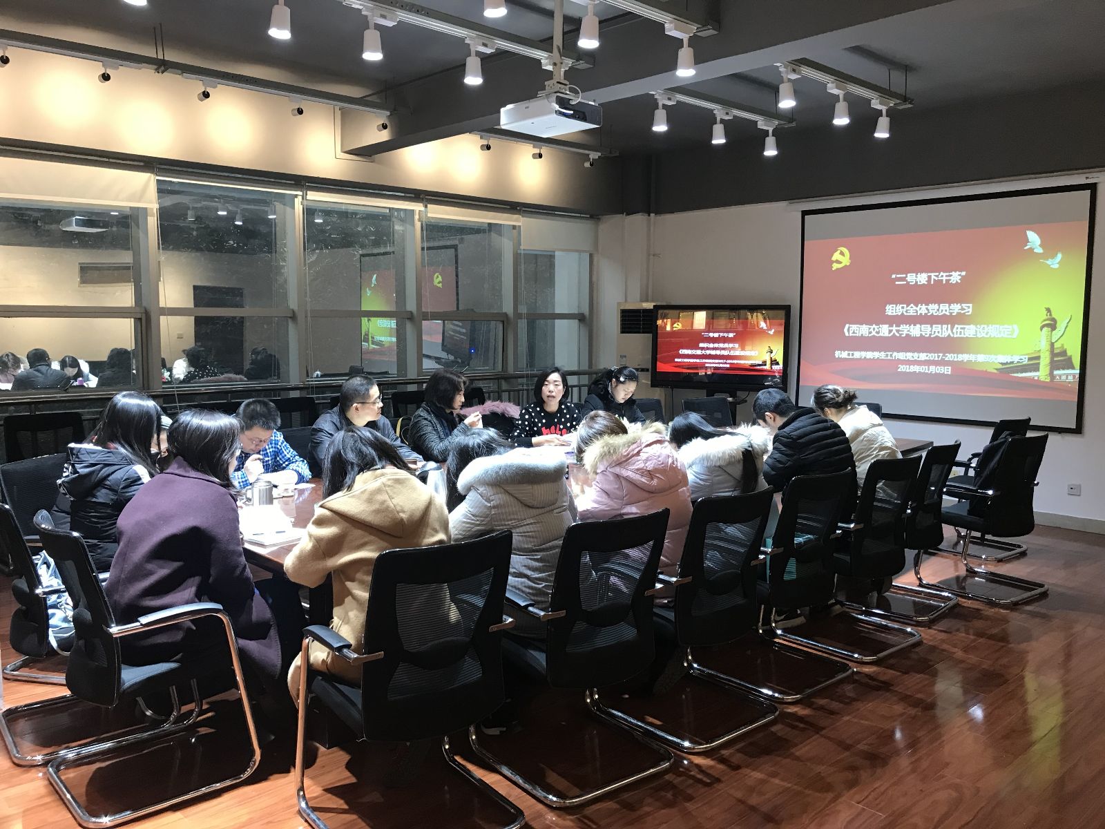 云博电子·(中国)网站学生工作组“二号楼下午茶”——学习《西南交通大学辅导员队伍建设规定》