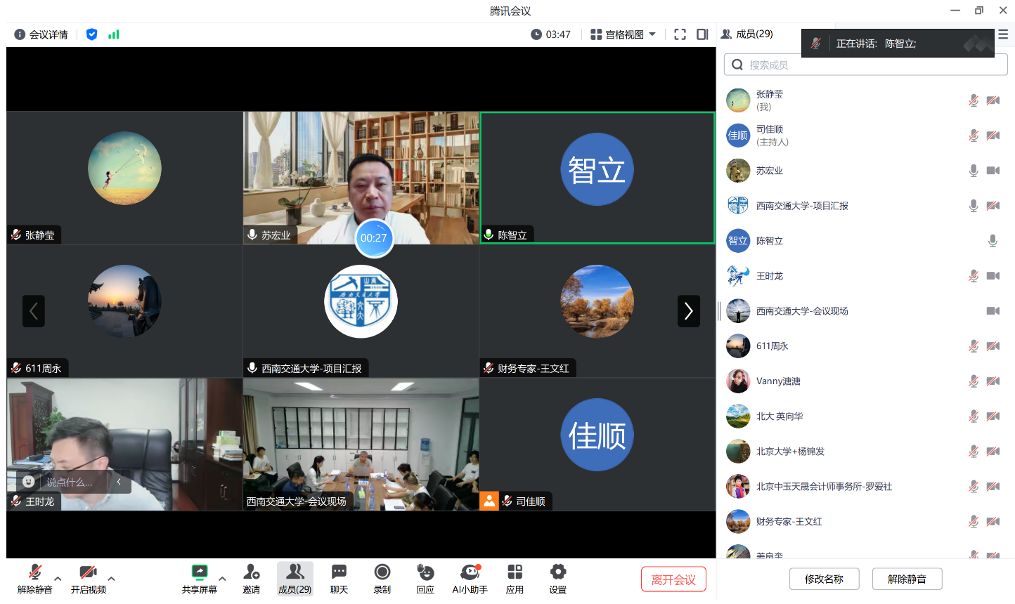 此次项目验收会议采用线上和线下会议结合的形式,出席本次会议的专家和领导包括:重庆大学王时龙教授、浙江大学苏宏业教授、东南大学刘晓军教授、中国科学院微小卫星创新研究院蒋国伟教授级高工、北京卫星制造厂有限公司孙连胜研究员、中国航空工业集团公司成都飞机设计研究所周永研究员、西安交通大学杨军教授、中国科学院微生物研究所王文红高级会计师、北京中玉天晟会计师事务所有限责任公司罗爱社高级会计师和中国计量科学研究院姜媛媛高级会计师;高技术研究发展中心陈智立处长、张梦月专项主管和司佳顺项目主管;我校科学技术发展研究院于小娟副院长、赵梨利科长;项目负责人丁国富教授、各课题负责人及任务负责人、研究骨干以及重要参与人员等40余人。