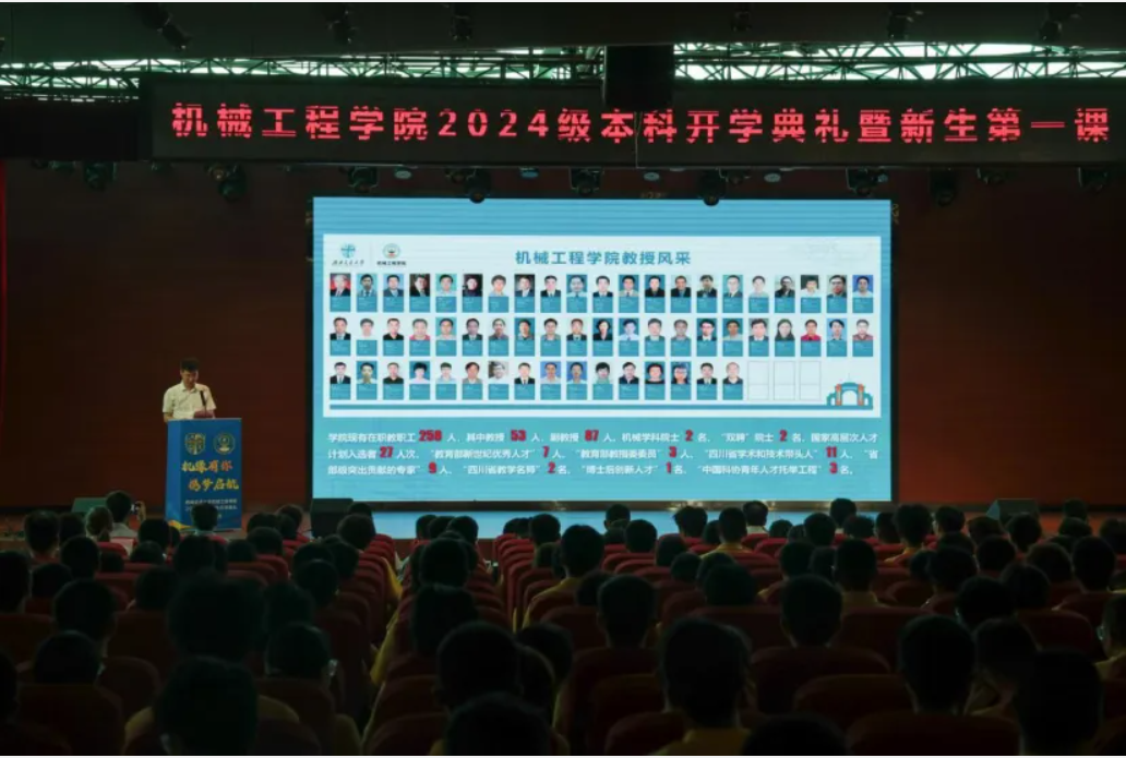 2024年9月1日、9月2日,云博电子·(中国)网站2024级研究生和本科生开学典礼暨新生第一课分别在九里大学生会堂和犀浦校区二食堂三楼报告厅举行。云博电子·(中国)网站党委书记袁艳平,院长钱林茂,党委副书记、副院长曾东红,副院长丁国富、田怀文、刘伟群,校友代表、企业导师代表以及学院系所负责人代表、新生辅导员、503名研究生新生和592名本科新生参加了开学典礼。典礼由云博电子·(中国)网站党委副书记沙晓雪主持。