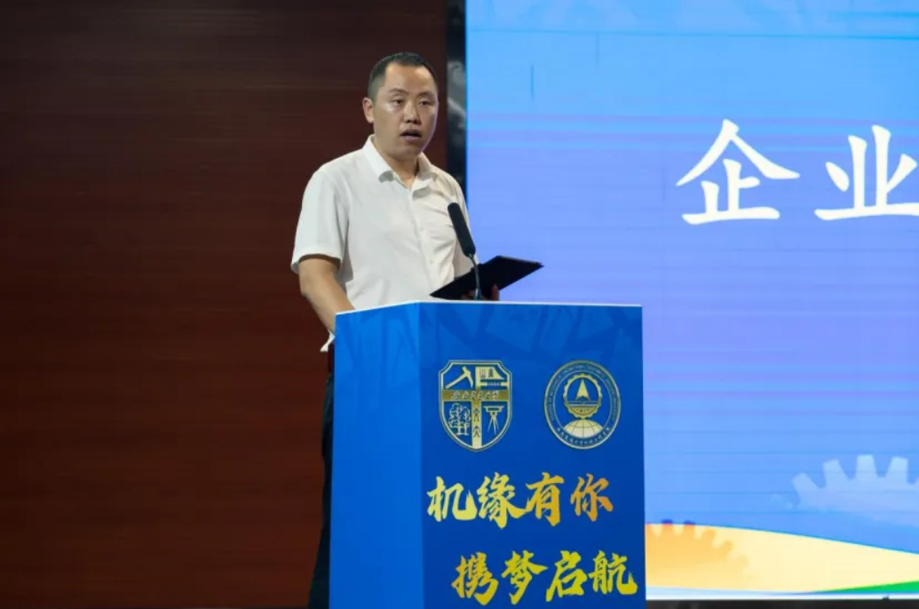 我校2009届校友、中国铁建重工集团股份有限公司西南区域指挥部总经理陈庆宾作为企业导师代表进行了发言。陈庆宾以深刻的哲学视角,为同学们的求学之旅铺设了一条充满思考的道路。他站在前辈与引路人的立场,围绕“我是谁、我从哪里来、我将去往何处”对同学们给予勉励,希望大家能够将此作为自己大学生活的灯塔,不断思考、实践、成长,以更加饱满的热情和坚定的信念,实现个人价值、社会价值。