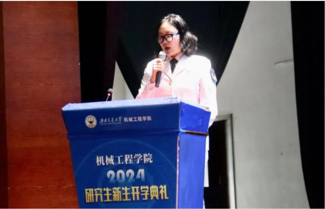 学院优秀本科在校生朱艾新、研究生在校生涂蔓蝶代表学长们和新生们做了分享。朱艾新以自身为例,展示了自己在交大取得的诸多荣誉和付出的努力。以此激励同学们,大学不仅是享受与探索的舞台,更是思考与成长的时刻。建议大家保持谦逊的求学之心,善待他人,奋发向上,感恩身边的人。涂蔓蝶和大家分享了两点感悟:一是无畏艰辛,志存高远,厚德笃行。二是抛却杂念,释放焦虑。她鼓励新同学们不要害怕失败,要保持积极的心态,相信自己的能力,勇敢地面对挑战。