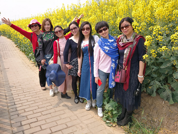 重庆路素有“中国最美乡村公路”之称,三月的重庆路两旁的油菜花漫山遍野,像铺了一层金黄的地毯。徜徉在油菜花花海中,女教职工们摆着各种各样的姿势,放飞自我,把最美的一面展现在镜头前。