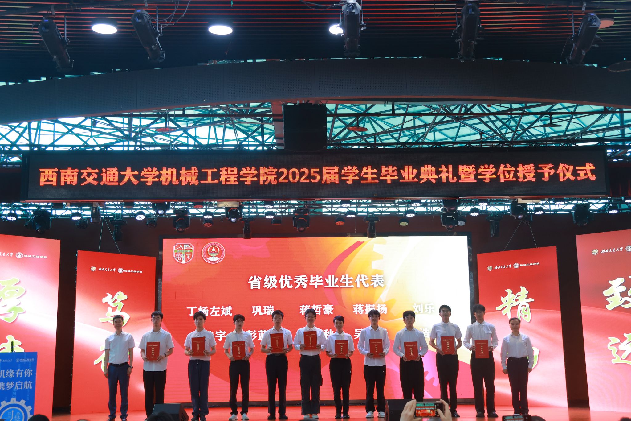 典礼上宣读了四川省优秀毕业生和西南交通大学优秀毕业生名单,包括陈彦冰、陈涛在内的43位省级优秀毕业生和巴朋威、范宇航等109位校级优秀毕业生。党委书记袁艳平、院长钱林茂为省级优秀毕业生代表颁奖,党委副书记丁军君、副院长刘伟群为校级优秀毕业生代表颁奖,共同祝贺获得荣誉的同学们。