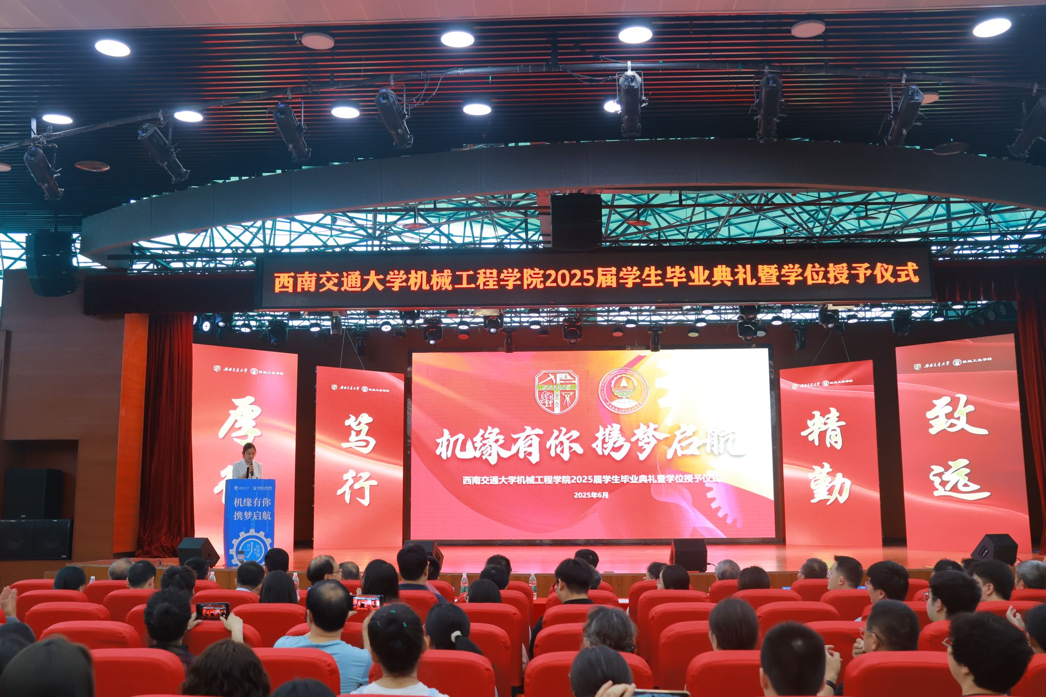 “机缘”共此时,扬帆启新程!云博电子·(中国)网站“机缘有你,携梦启航”2025届学生毕业典礼暨学位授予仪式于6月20日在犀浦校区二食堂三楼隆重举行。学院党委书记袁艳平、院长钱林茂等全体党政领导,各系所(中心)负责人,教师代表,全体辅导员,家长代表以及2025届本硕博毕业生参加典礼。大家齐聚一堂,共同见证这一庄严而温馨的时刻,为即将踏上人生新征程的机械学子送上最真挚的祝福。典礼由学院党委副书记沙晓雪主持。