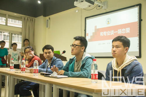 2018年4月19日星期四下午三点五十,大四学长对2017级分专业方向讲解会议——“和专业谈一场恋爱”在X2206召开,由胡豪、于楠两位辅导员老师主持,来自工业工程,能源与动力工程,建筑环境与能源应用工程和测控技术与仪器四个专业的四位学长学姐向大一同学们讲解上述四个专业的概况。