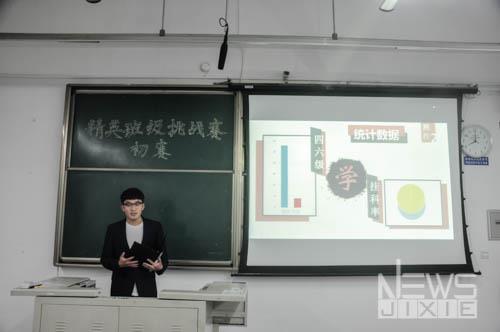 比赛开始,各班级的班长都对自己班级的情况做了一定的介绍。第一个上场的机械2016-07班班长首先对班级的党建情况进行了介绍,然后展示班级集体获得的各项奖项,同时日常通过班级点名来督促同学上课,营造良好的学习氛围,最后机械2016-07班将班级的活动和班级中的个人奖项做出了展示。