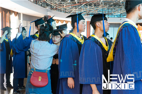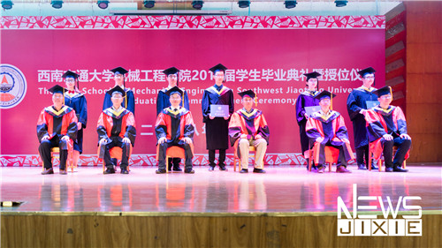 机械学院教授委员会委员钱林茂教授、程文明教授、董大伟教授、高宏力教授、田怀文教授、李柏林教授为毕业生代表授予学位并颁发证书。在授位仪式进行过程中,老师们与毕业生代表亲切攀谈并合影留念,毕业生代表也送上鲜花表达对老师教导之恩的感谢,毕业生家长也一同上台合影留念。