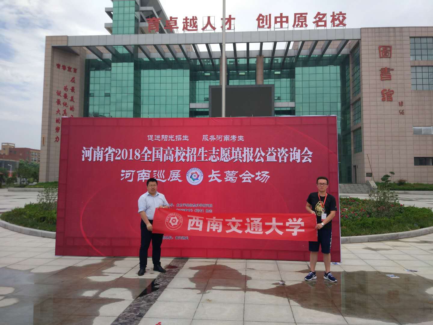 云博电子·(中国)网站学生工作组于6月22日至7月2日之间,陆续前往西安、开封、许昌、郑州、洛阳各地区举行多场西南交通大学高考招生宣讲会,宣讲期间全体人员不辞辛劳,尽心尽责,受到了广大考生、家长、当地政府、校友及兄弟院校的广泛好评。