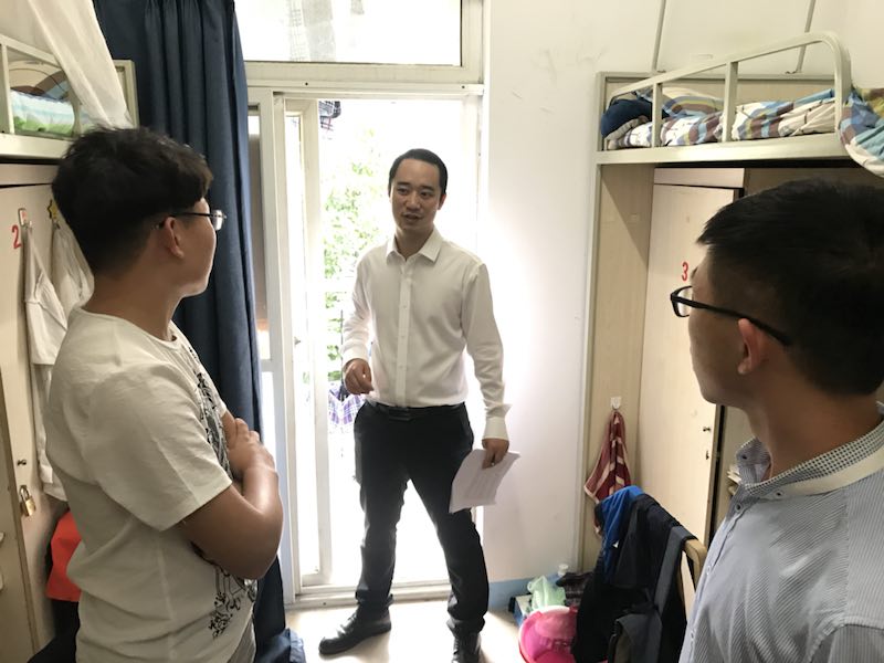 倒迁完成后辅导员走访学生宿舍,与学生交流(2)