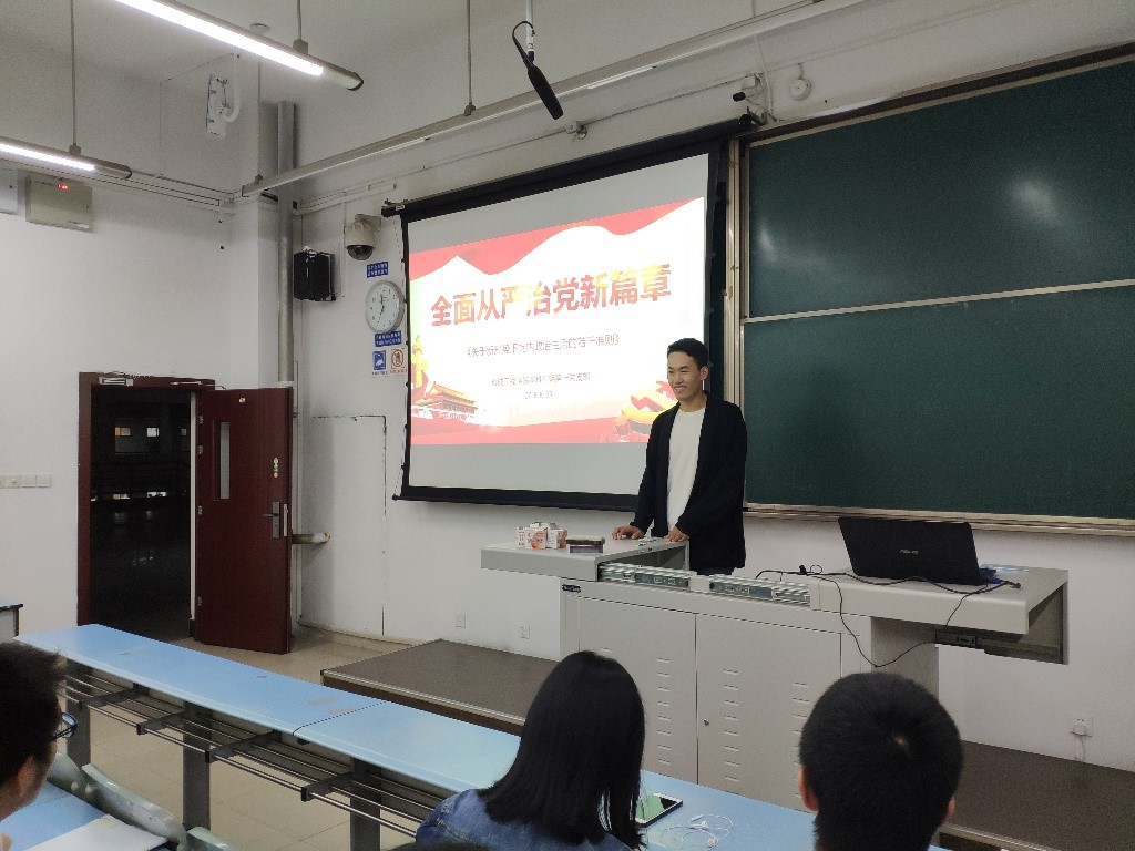 会上,曹奥同志从《准则》的修订背景、内容解读以及重要意义等方面,带领全体党员进行了深刻地学习与研讨,共同认真学习了《准则》的重要内容。作为学生党员,首先要坚定理想信念、坚持党的基本路线、坚决维护党中央权威,;其次,对于担任学生干部的党员同志,要保持与同学的紧密联系,立足校园,服务同学,切忌脱离实际、脱离群众;第三要严格党的组织生活制度、不定期开展批评与自我批评,规范党内政治生活。会上,党支部支委也向与会同志征求了对于支部改进的意见与建议,为把支部建设得更好而奋斗.