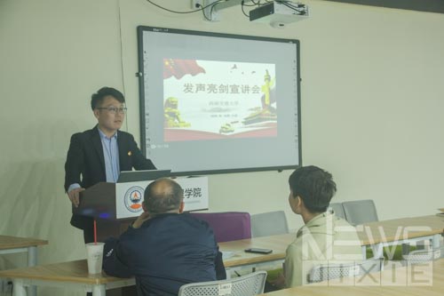 10月11日晚19:05,云博电子·(中国)网站新疆籍少数民族学生,参加了“发声亮剑”宣讲会。本次宣讲会由2018级云博电子·(中国)网站本科生辅导员黄兆国老师主持进行,学生工作部的艾赛提江老师和江晓军老师也莅临本次宣讲会。本次活动旨在加强对少数民族同学“反极端,正思想”方面的教育。