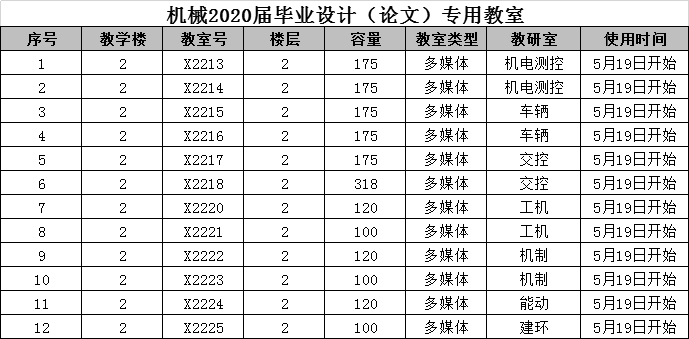 关于安排2020届毕业设计(论文)专用教室的通知