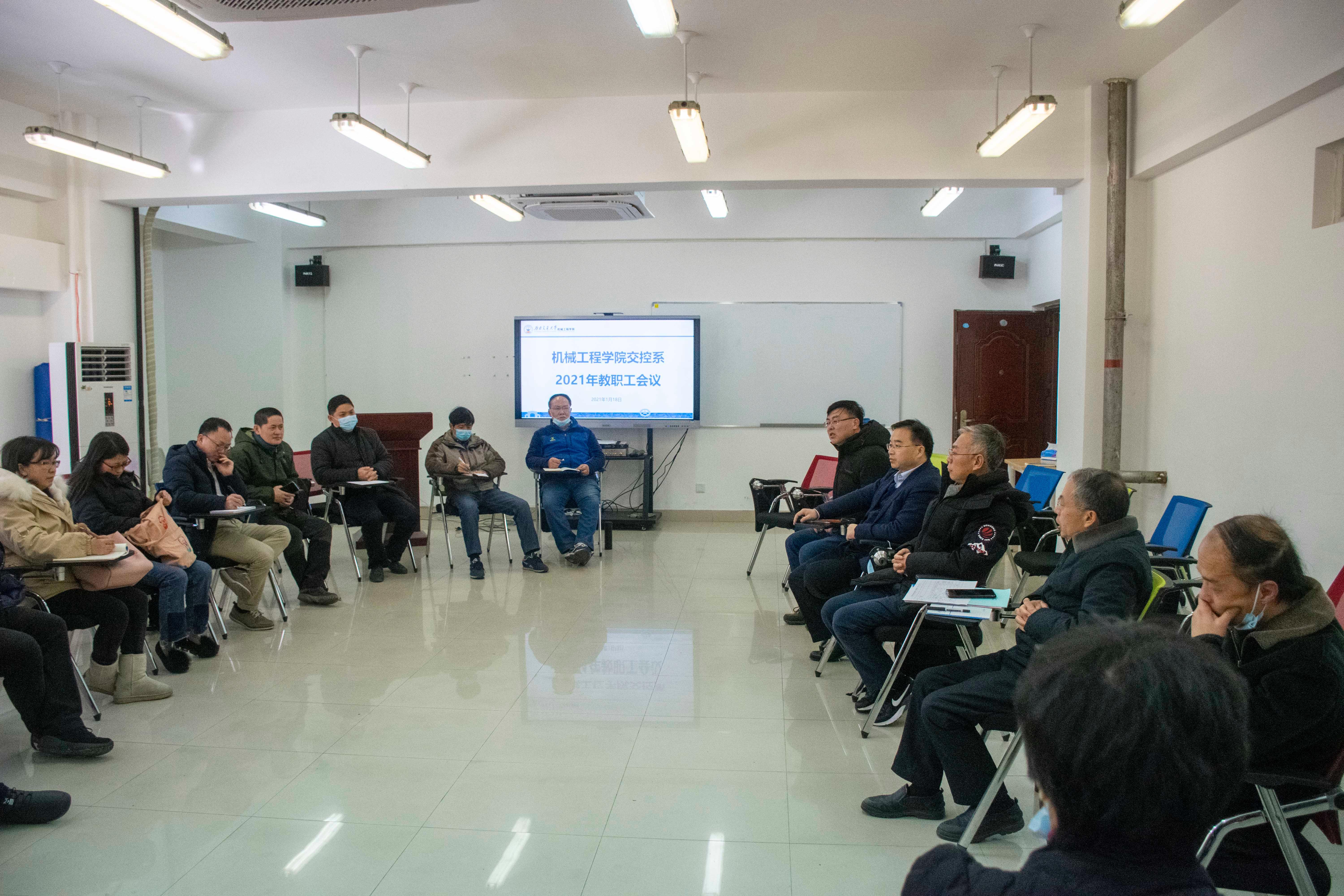 2021年1月18日下午,云博电子·(中国)网站在犀浦校区2号教学楼2211会议室召开交通设备与控制工程系全体教职工大会。云博电子·(中国)网站党委书记董大伟,学院院长钱林茂,学院党委副书记徐嘉宁,学院副院长田怀文以及交控系近40名教职工参加本次会议。