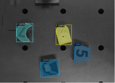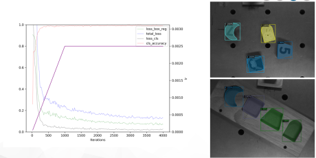 感知器方面,采用工业相机MER-041-436U3M作为视觉感知模块。图像处理使用mask-rcnn实现工件的定位工作。